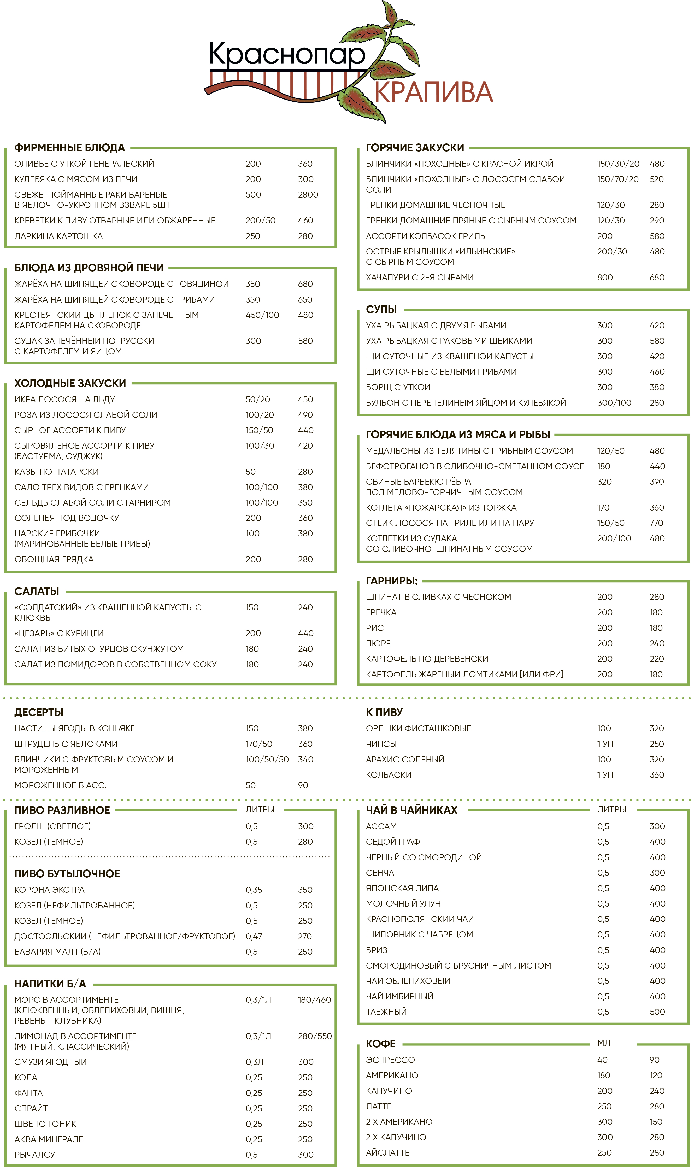 Кафе при банном комплексе «Краснопар». В меню — блюда русской кухни, гостям подают блины с красной икрой и слабосоленой семгой, отваривают и жарят раков и запекают судака. В разделе десертов — ягоды в коньяке и штрудель. Интерьер оформлен в светлых тонах с преобладанием природных материалов. На крыше работает летняя веранда.