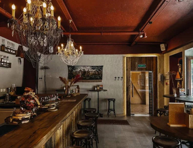 Заведение буквально создано для эпичных мальчишников и девичников — с музыкой, настойками и русским размахом.