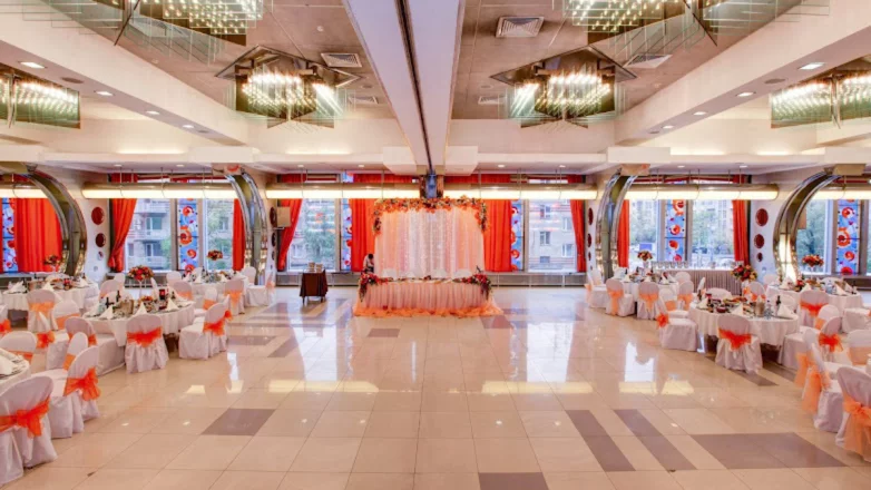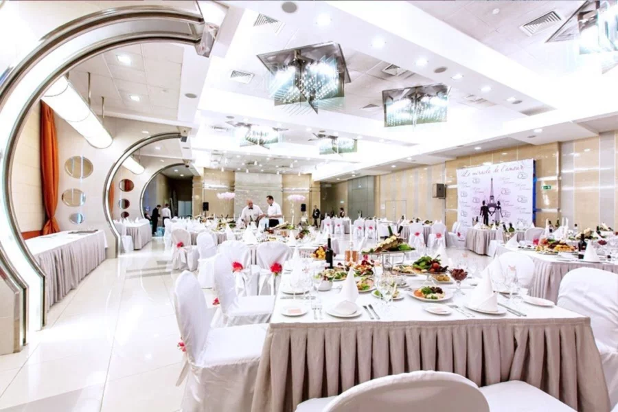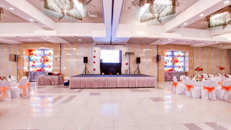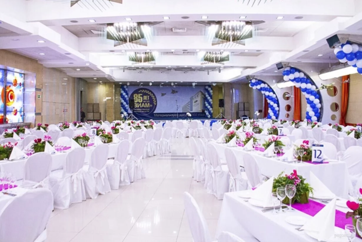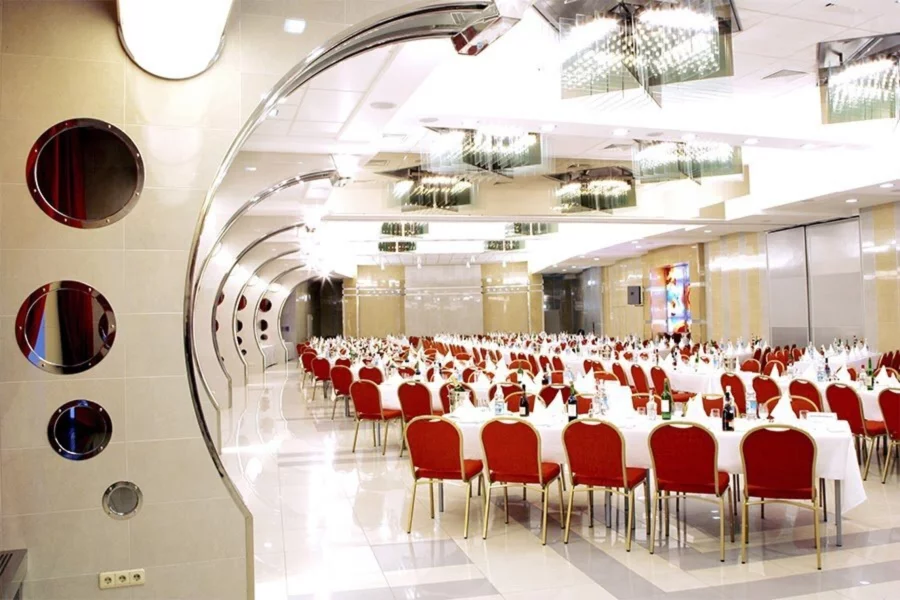 «Вечерний Космос» — просторный банкетный зал в легендарной гостинице «Космос» на ВДНХ. Светлый интерьер в пастельных тонах с элементами футуризма создаёт атмосферу стиля и уюта, а вместимость до 650 гостей (или до 300 в банкетной рассадке) делает площадку идеальной для любых форматов — от свадеб и юбилеев до концертов и корпоративов.