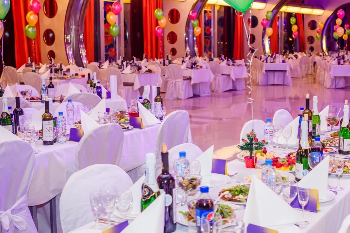 Торжественная часть мероприятия проходит в банкетном зале Космос. Вас ждет изысканный новогодний банкет, безлимитные напитки и насыщенная развлекательная программа!