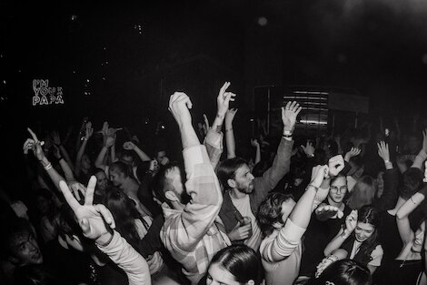 - Масштабное пространство с вечеринками и десятком баров-корнеров на Триумфальной площади