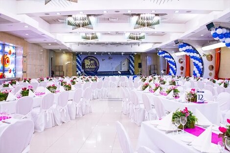 - Торжественные банкетные залы и рестораны при четырёхзвездочном отеле