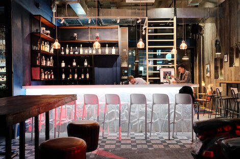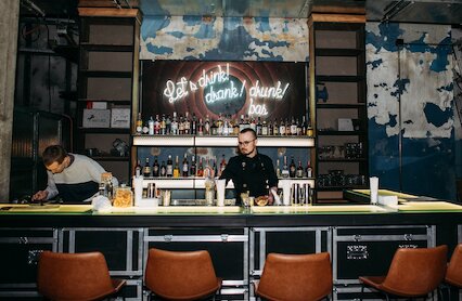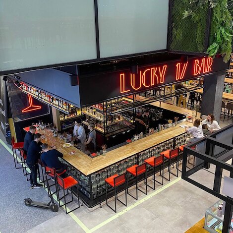 - Бар с коктейлями и крепким алкоголем на территории пространства «Профсоюз»