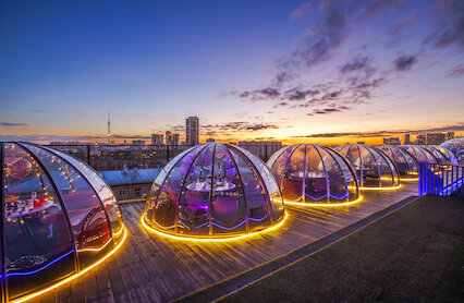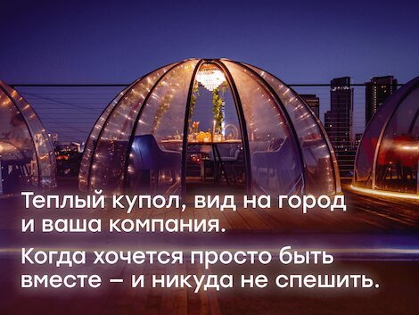- Купольные беседки на крыше с невероятным панорамным видом на Москву днем и звездным небом ночью. ВДНХ.