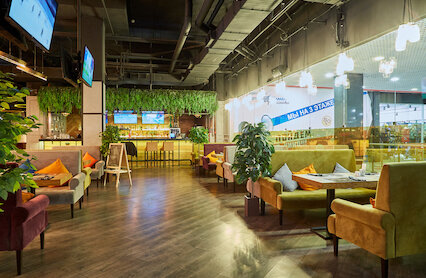 - Cпортбар с полсотней сортов пива, квизами и амфитеатром для просмотра трансляций 24/7