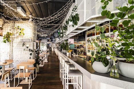 - Лаунж-бар с концептуальным дизайном, интересной актуальной едой и бестабачными паровыми коктейлями