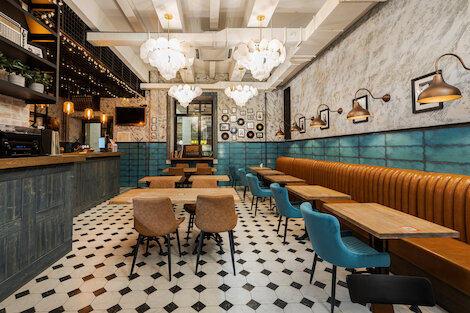 - Камерное сетевое кафе с пиццей и спешелти кофе на Триумфальной площади