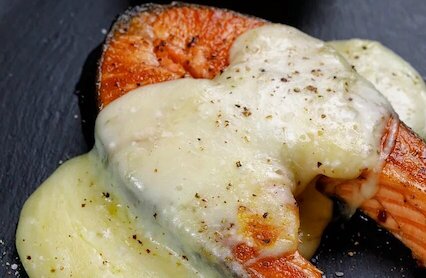 - Корнер в Tishinka Gastro Hall, где все блюда подают со швейцарским сыром Раклет