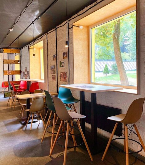 - Кафе с ярким интерьером на территории одноимённого павильона ВДНХ