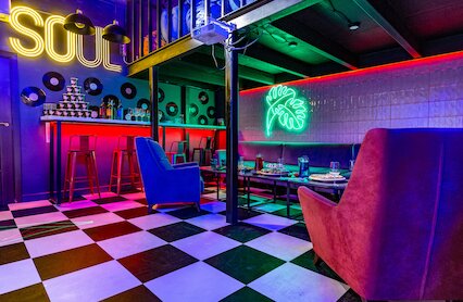 - Круглосуточное кафе и караоке-бар с сочным современным интерьером