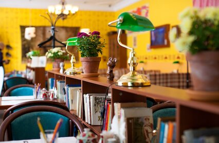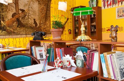 - Кафе, стилизованное под купе исторического поезда на Садовнической улице