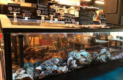 - Бар с крафтом и упором на морепродукты в центре Москвы