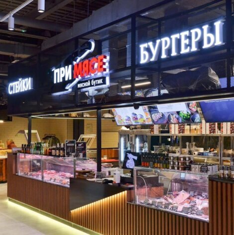 - Мясной корнер с большим выбором стейков и бургеров в фудхолле Terminal