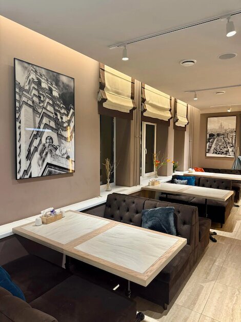 - Лаунж-бар у парка Динамо с европейской, кавказской и азиатской кухней