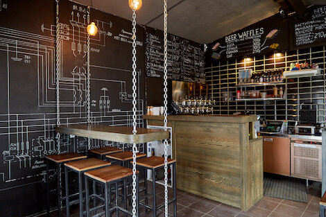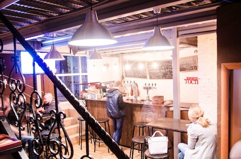 - Сетевой пивной бар от одноимённой пивоварни с фирменным пивом и лаконичным интерьером