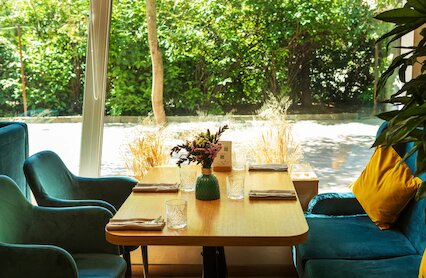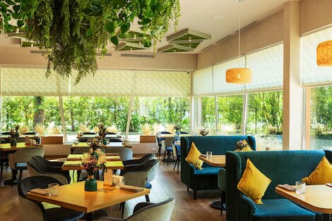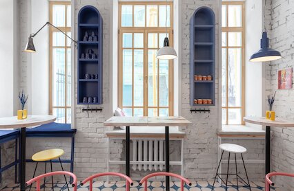 - Бистро с ярким интерьером на Лужнецкой набережной в парке Лужники