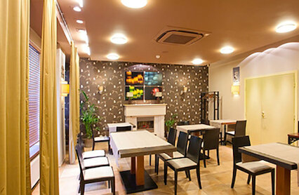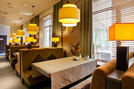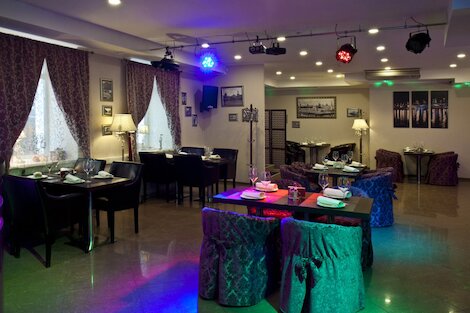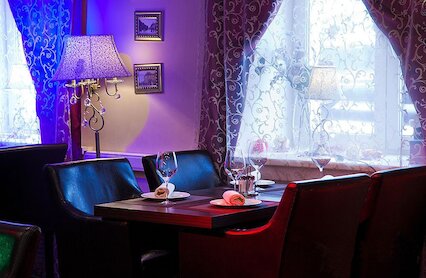 - Кафе с элегантным классическим интерьером и камерной атмосферой