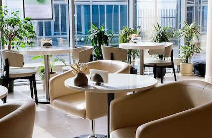 - Просторное кафе с панорамными окнами на Ленинградском проспекте