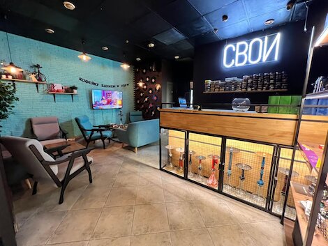 - Камерное лаунж-кафе с полноценным меню, барной картой и дегустациями паровых бестабачных коктейлей