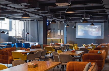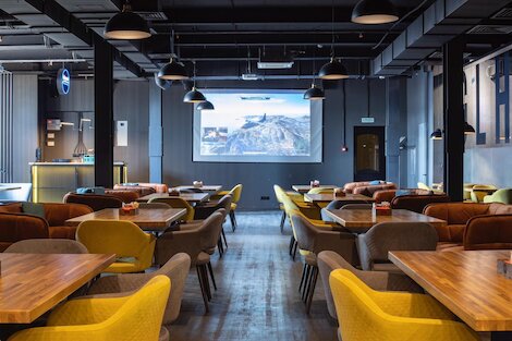 - Атмосферный лаунж с уединенными комнатами, приставками и настольными играми