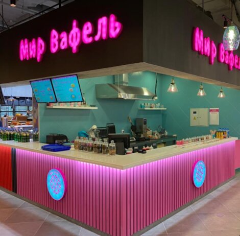- Корнер с бельгийскими вафлями на территории фудхолла «Eat Market Орбита»