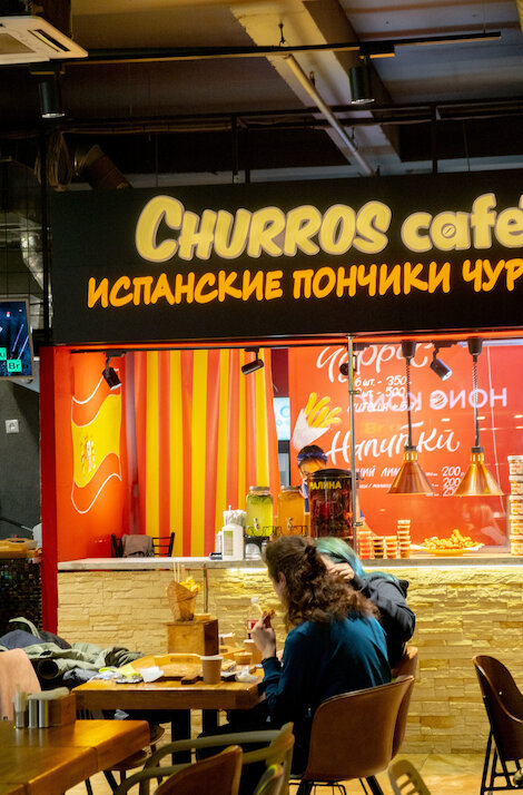 - Корнер с греческими пончиками на территории фудхолла «Рестомаркет ВДНХ»