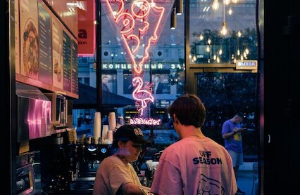 - Камерное сетевое кафе с пиццей и спешелти кофе на Триумфальной площади