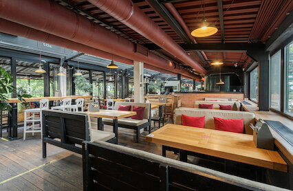 - Cпортбар с полсотней сортов пива, квизами и амфитеатром для просмотра трансляций 24/7