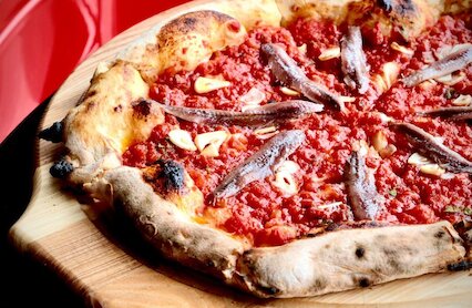 - Ламповая пиццерия с каноничной неаполитанской пиццей и лавкой итальянских продуктов