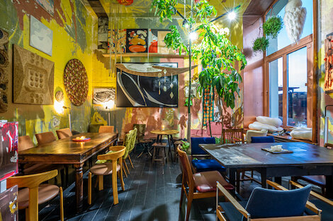 - Винтажный ресторан-бар с замысловатыми блюдами и напитками и богемной атмосферой