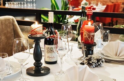 Праздничный банкет обычно включает аренду зала, составление меню с закусками, горячими блюдами, десертами и напитками, а также обслуживание гостей персоналом кафе или ресторана.
