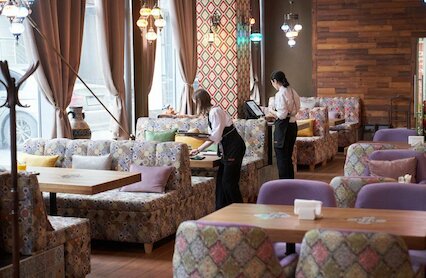 - Ресторан русской кухни с эстетичными десертами и чаем из самовара в Большом Спасоглинищевском переулке