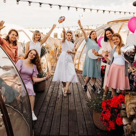 - Прозрачные купольные беседки на крыше с видом на город, которые работают круглый год
