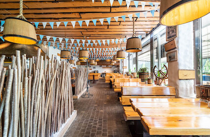 - Внушительный ресторан с одесским колоритом и специализацией на черноморской кухне