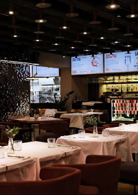 - Камерный ресторан с поздними завтраками с отдельным залом на Арбатской