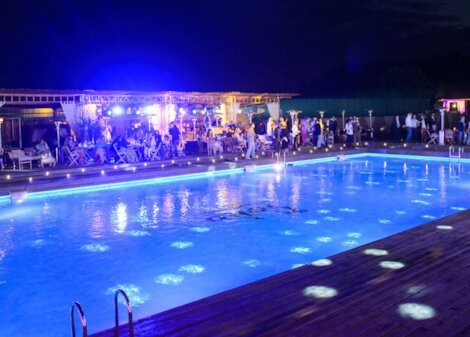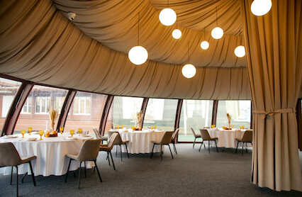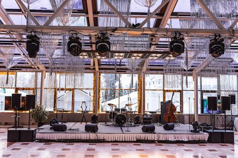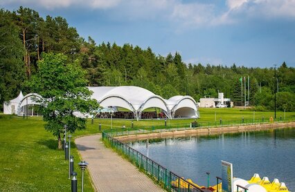 - Банкетный зал и открытые площадки для мероприятий при одноименном всесезонном спортивном комплексе