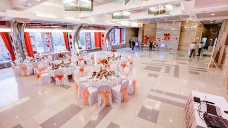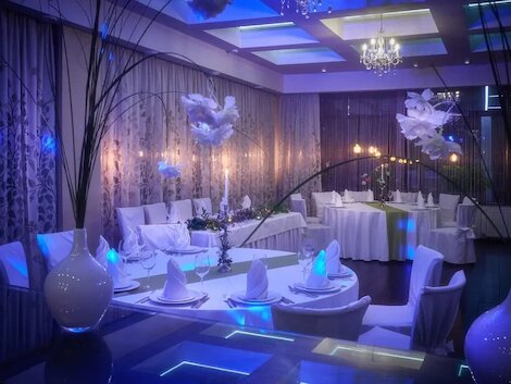 - Торжественные банкетные залы и рестораны при четырёхзвездочном отеле