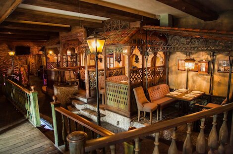 - Двухэтажный грузинский ресторан с антуражным интерьером в Камергерском переулке