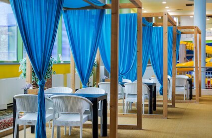 - Семейный ресторан со смешанной кухней в аквапарке «Ква-ква-парк» в Мытищах
