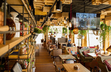 Многие такие заведения оборудованы открытыми террасами, где можно наслаждаться едой и напитками на свежем воздухе.