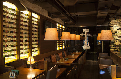 - Лаунж-кафе с европейской кухней и бестабачными паровыми коктейлями