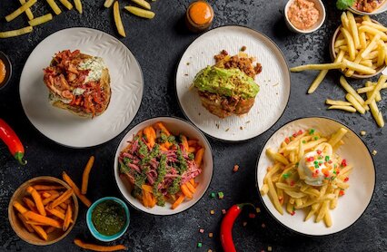 - Корнер в гастромаркете «Депо» с акцентом на картофель фри и бургеры- Менделеевская