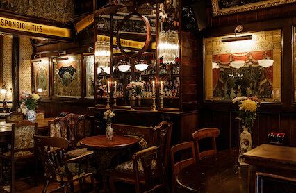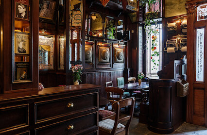 - Ирландский паб со спортивными трансляциями и винтажным интерьером