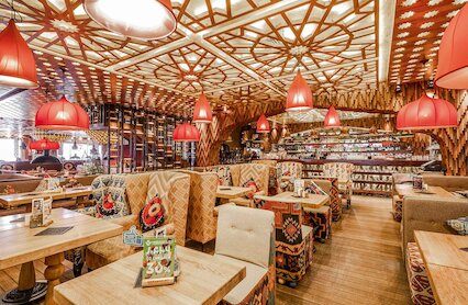 - Трехэтажный восточный ресторан на улице Скульптора Мухиной