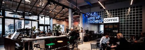 - Сетевое лаунж-кафе с полноценным меню на Бережковской набережной