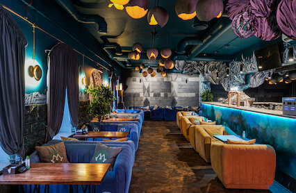 - Яркий караоке-клуб с европейской кухней и коктейлями