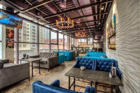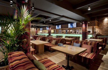 - Сетевой лаунж-бар с ярким интерьером у станции метро «Сокольники»