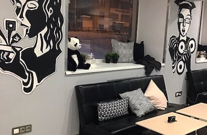 - Атмосферный лаунж с уединенными комнатами, приставками и настольными играми