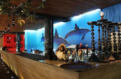 - Круглосуточный бар с диджей-вечеринками, обширным меню и коктейлями