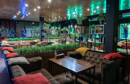 - Дружелюбный лаунж-бар с итало-грузинским меню, паровыми бестабачными коктейлями и кинопоказами в ЖК «Зиларт»